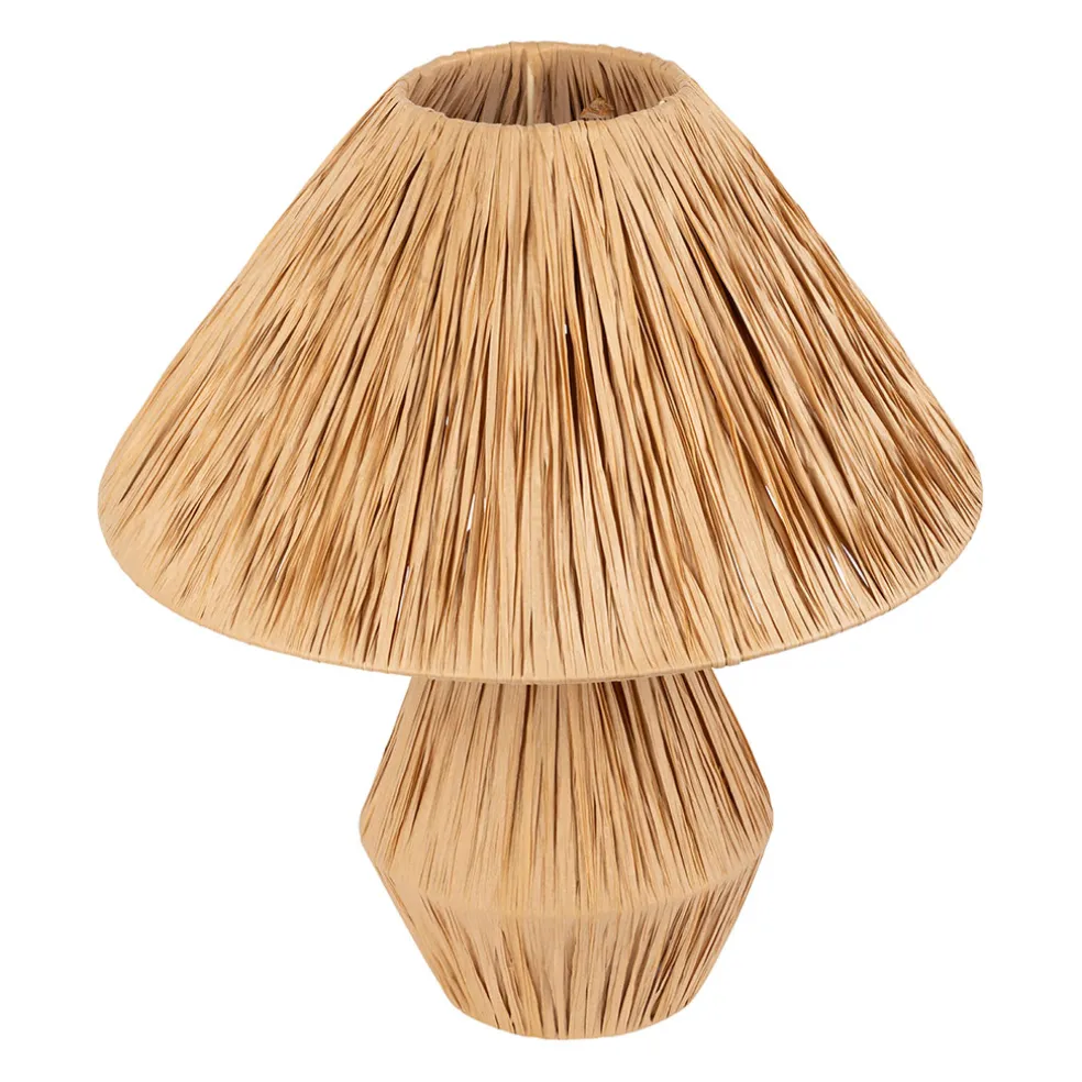Découvrez la magnifique lampe en raphia et fer naturel Calypsa, d’une hauteur de 41 cm.