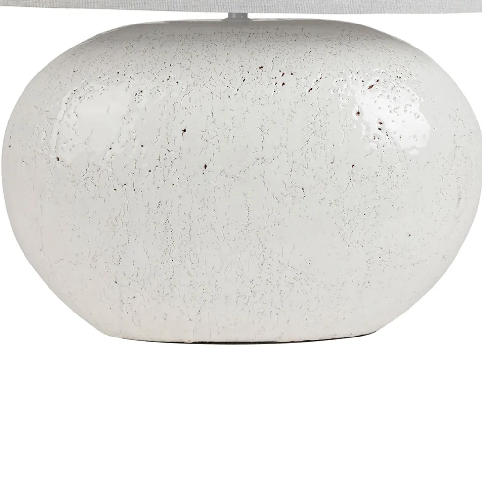 La lampe en terre cuite et lin blanc Tahra, d’une hauteur de 50 cm, s’intègre parfaitement à tout environnement, qu’il s’agisse d’un salon accueillant ou d’une chambre paisible.