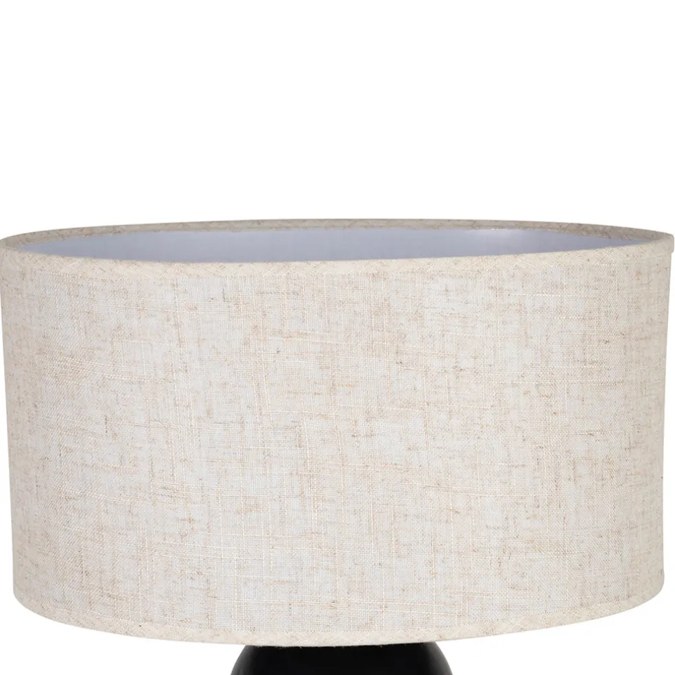 La base noire apporte une touche contemporaine et stable, tandis que l’abat-jour beige diffuse une lumière douce et agréable.