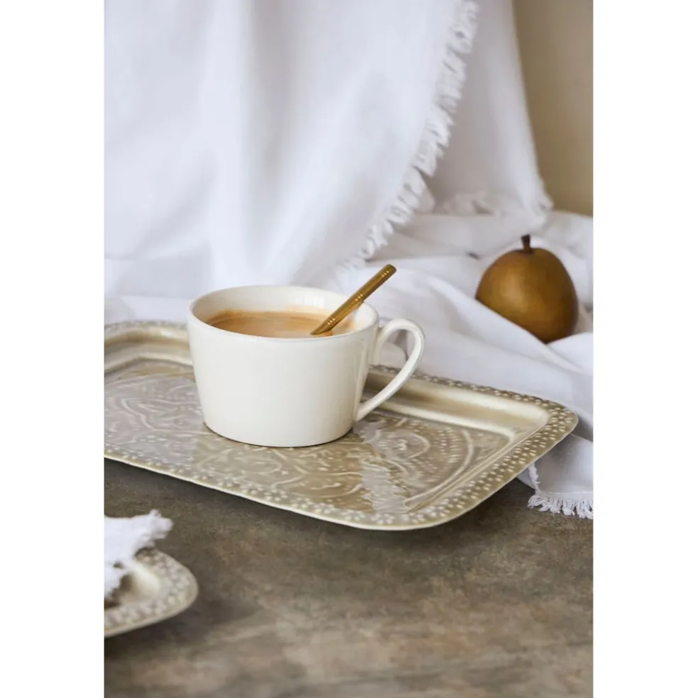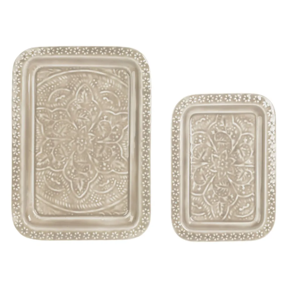 Fabriqués en fer, ces plateaux séduisent par leur design épuré et leur coloris grège intemporel.