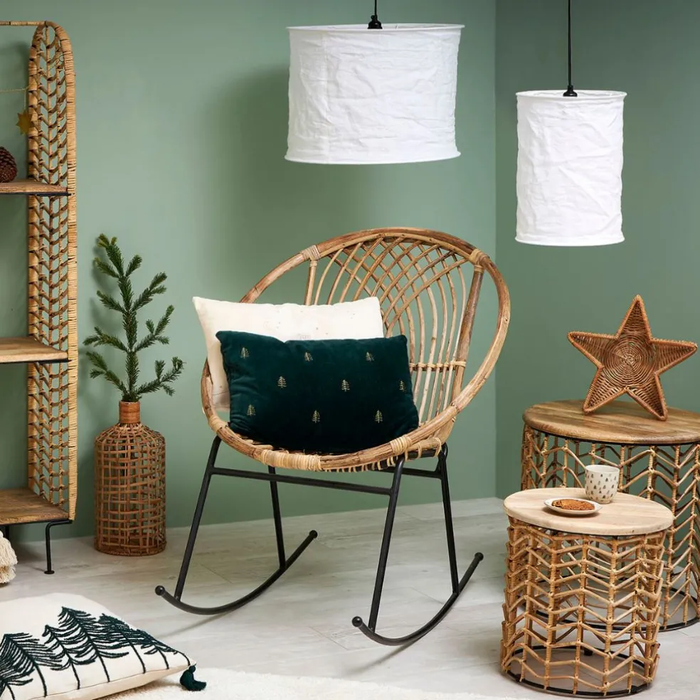 La première, plus grande (d45xh35 cm), convient parfaitement au-dessus d’une table ou dans un coin où vous souhaitez créer une lumière douce et enveloppante.