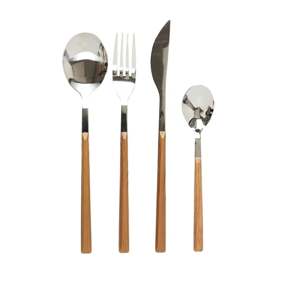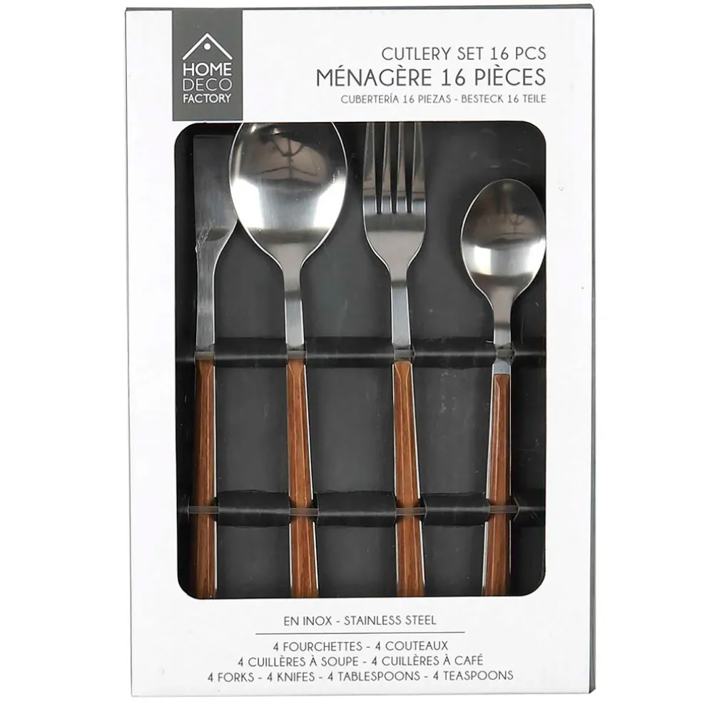 Vous adorez surprendre vos convives autour d’une belle tablée ? Testez cette ménagère composée de 16 couverts dorés effet bois, le succès sera au rendez-vous.Acier Inoxydable
