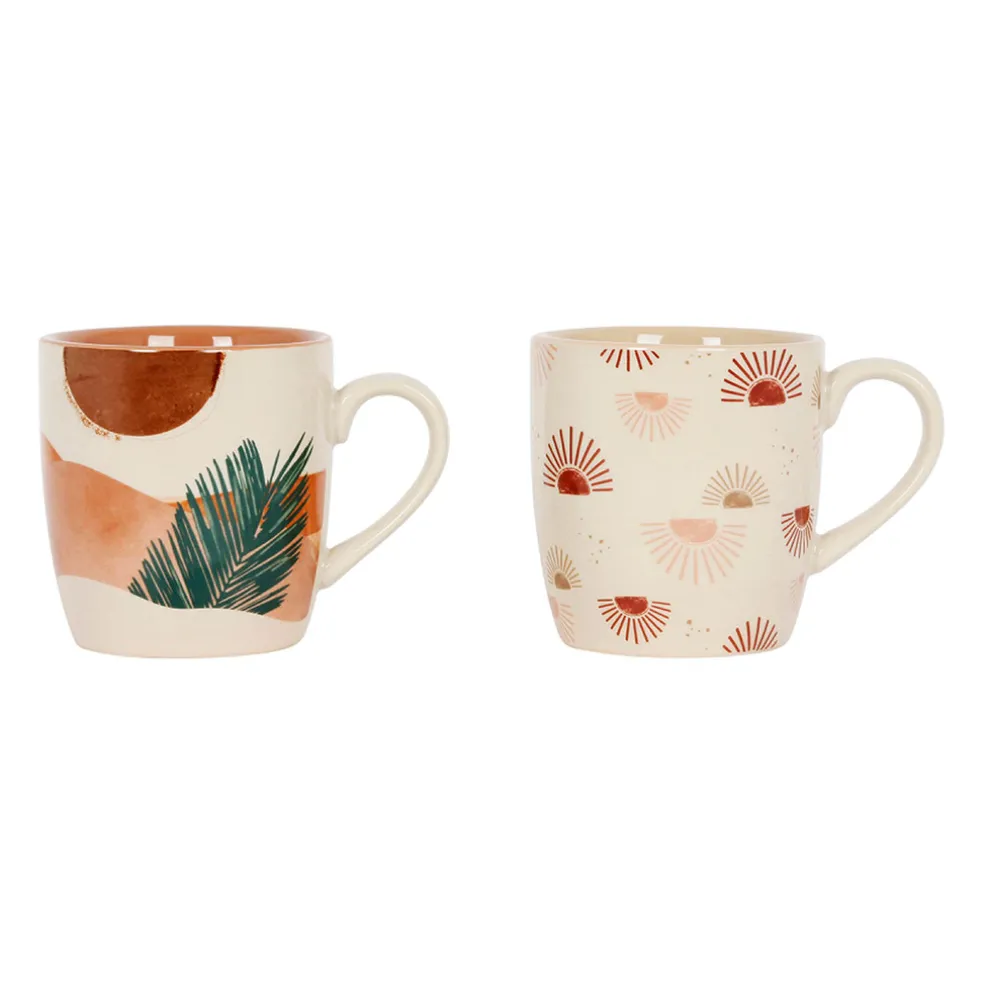 Dégustez votre café ou thé préféré dans ces mugs en porcelaine terracotta et vert de 30cl, ornés de délicieuses feuilles douces.Porcelaine / Porcelain