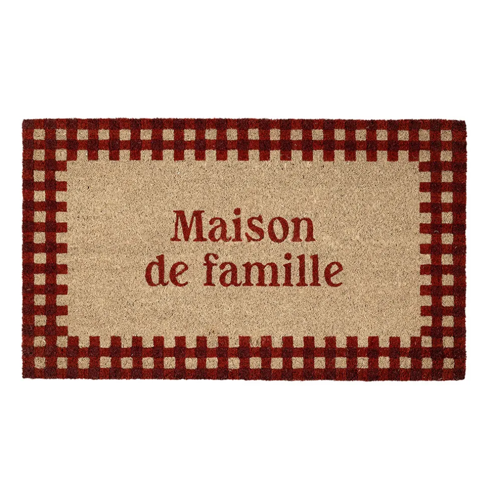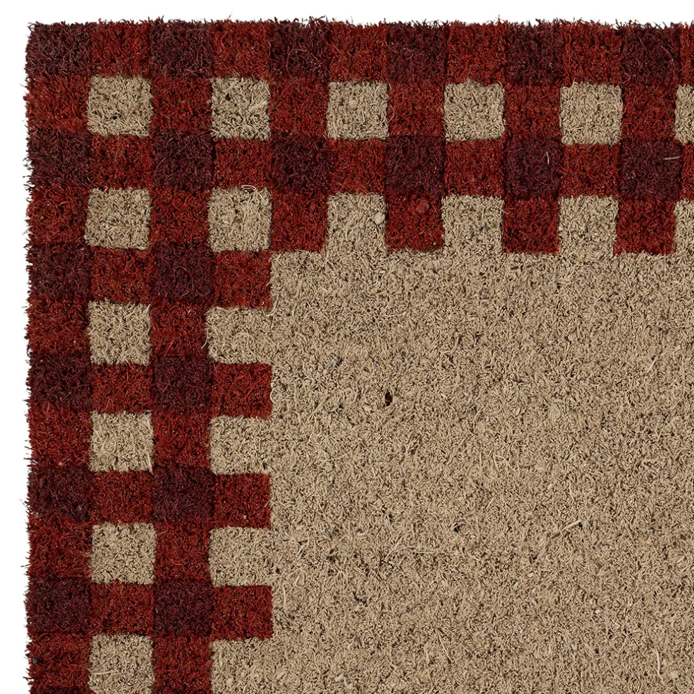 Paillasson damier naturel et rouge 73x43cm en coco, idéal pour apporter une touche rustique et champêtre à votre entrée.Pvc + coco / Pvc + coir