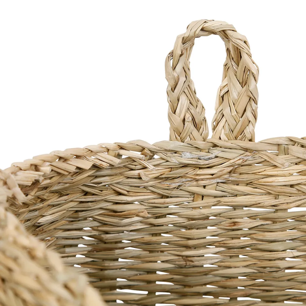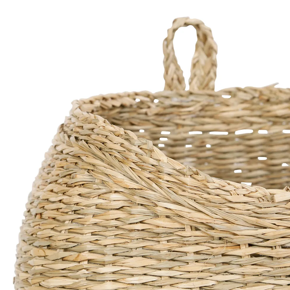 Panier mural x2 en jonc de mer de taille 31x26x21 – 18x13x13cm, au design naturel inspiré des récifs. Idéal pour organiser et décorer votre espace.Jacinthe d’eau + fer