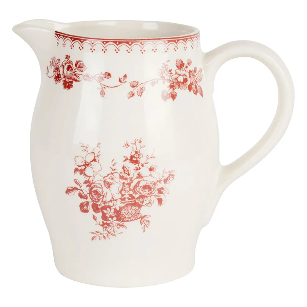 Ajoutez une touche de charme à votre table avec ce magnifique pichet en faïence bordeaux de 1,3 litre.