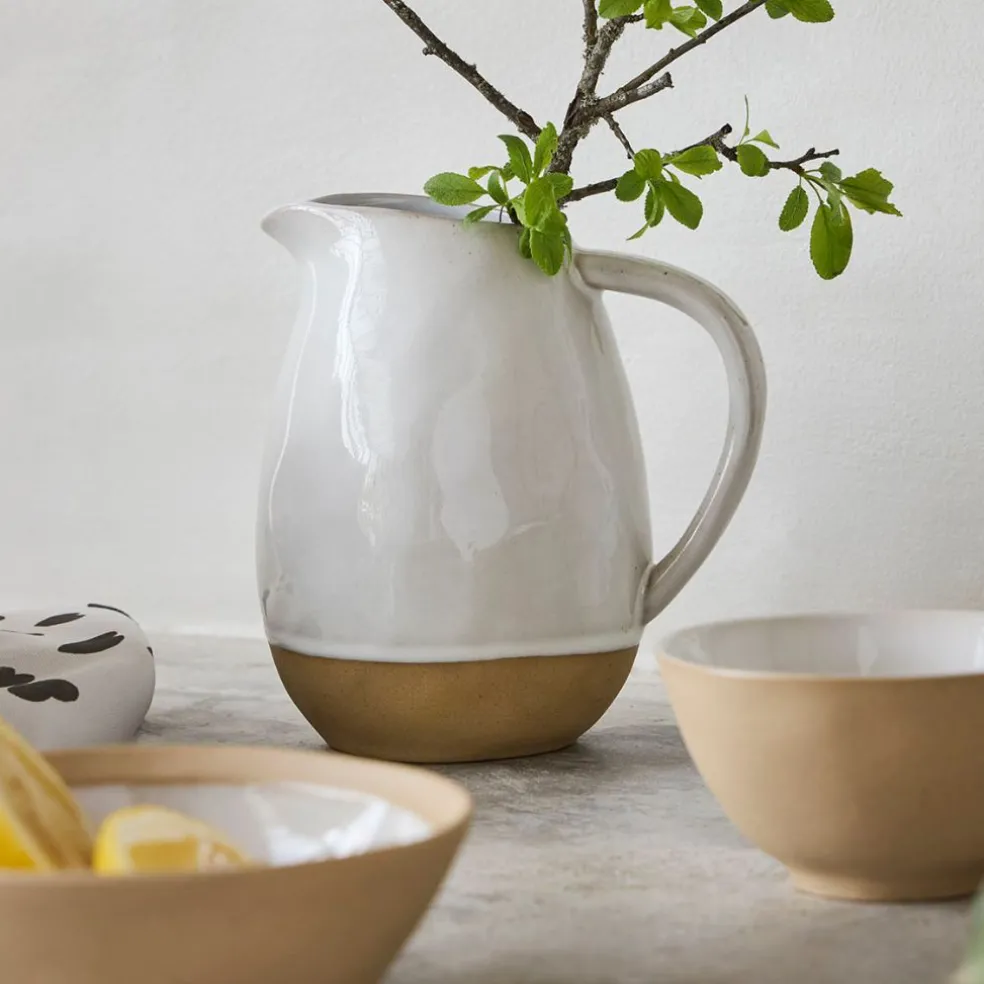 Ajoutez une note d’élégance à vos tables avec le pichet en grès blanc Jade.