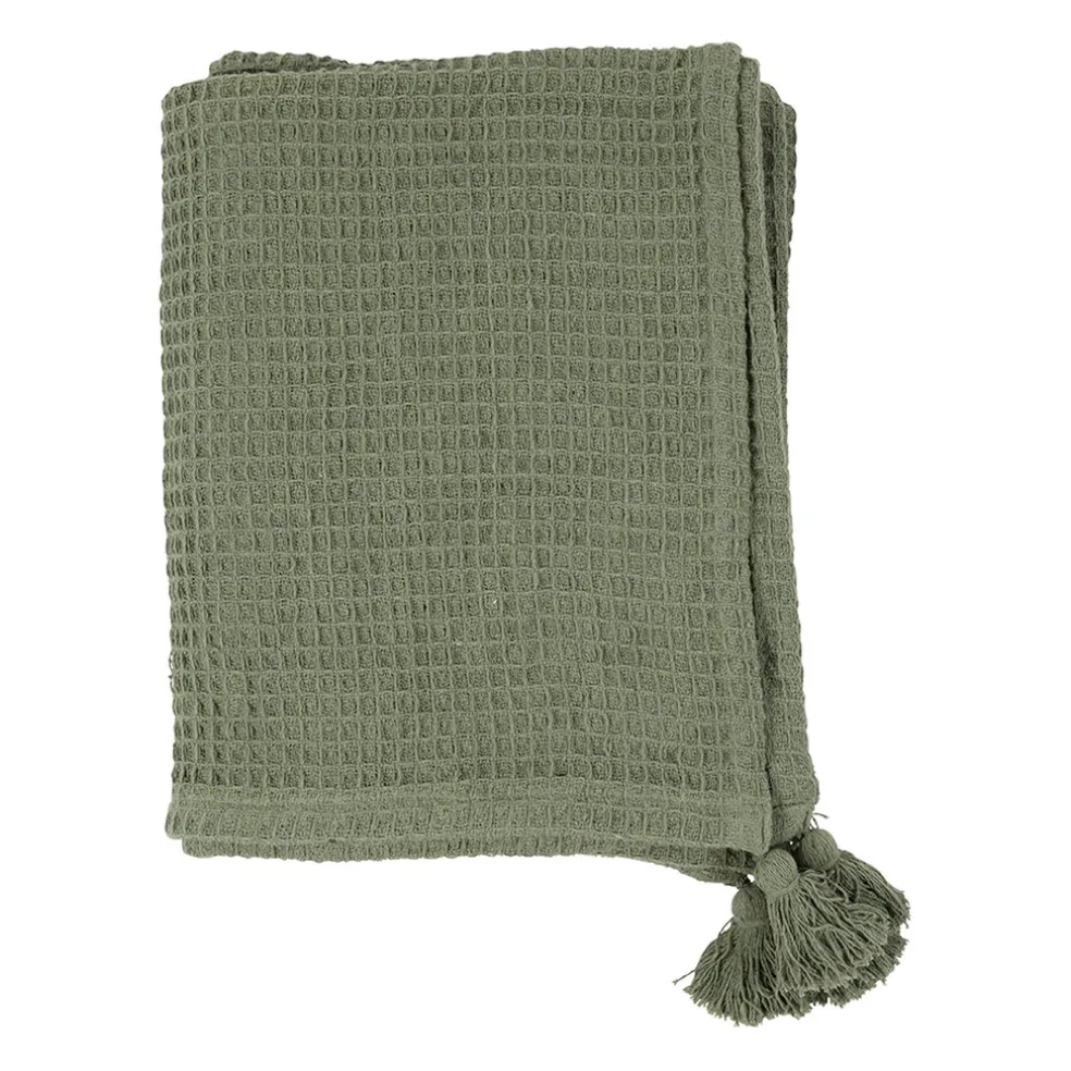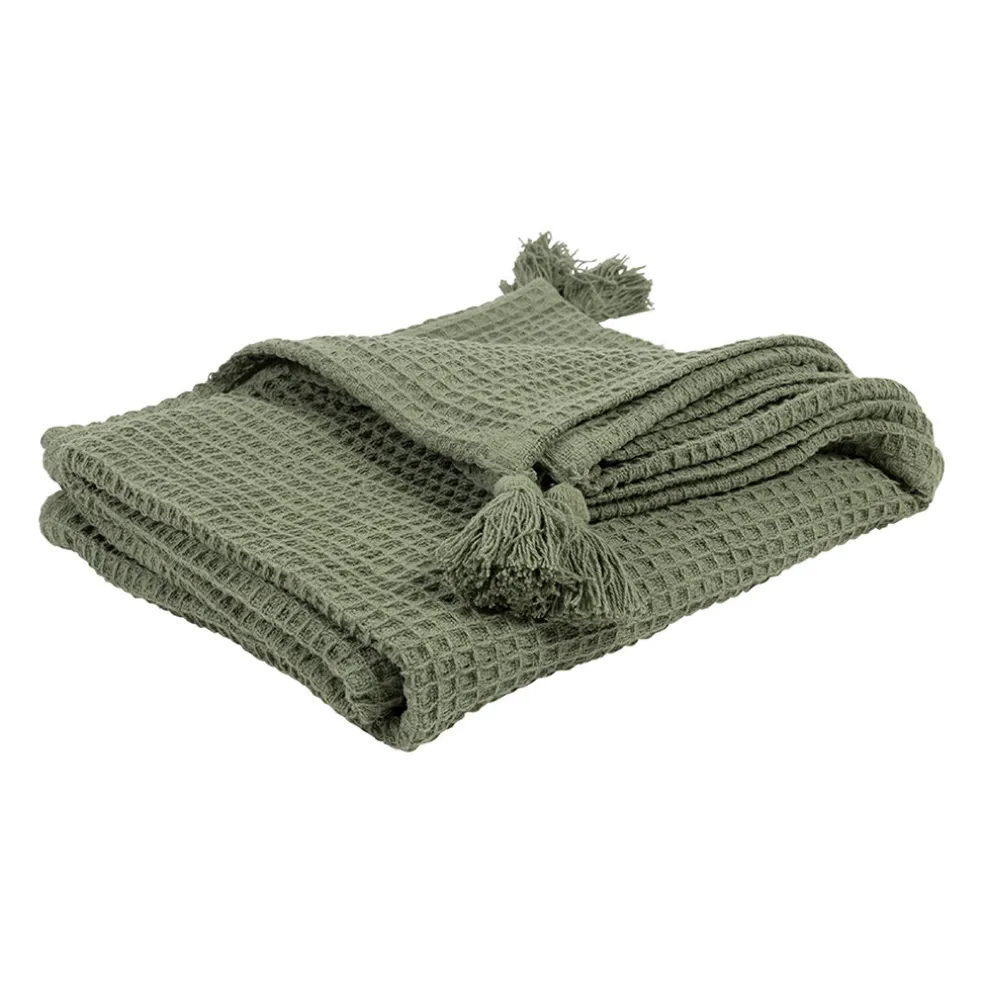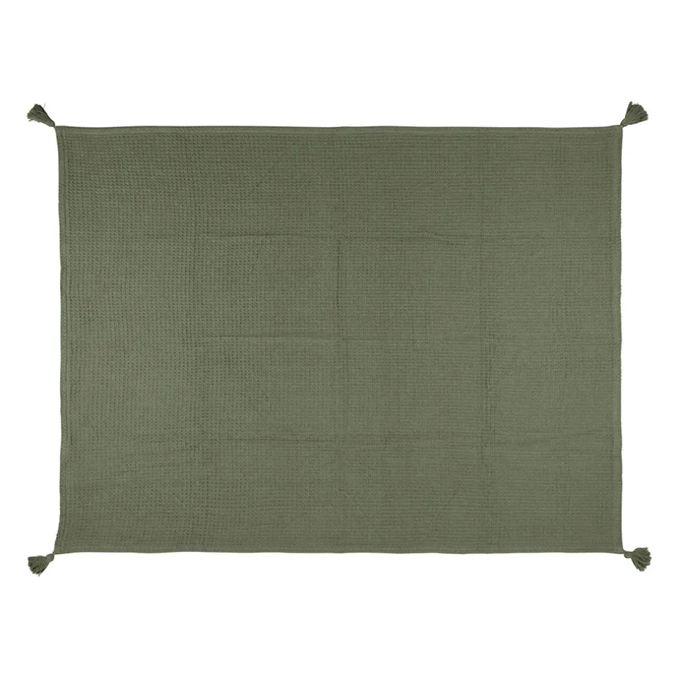 Découvrez ce magnifique plaid en coton vert de dimension 170x130cm de la marque Beezz.