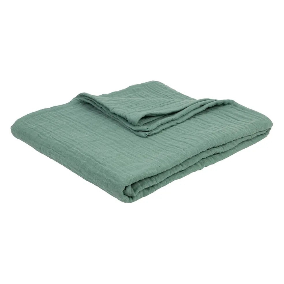 Découvrez le confort et la douceur avec notre magnifique plaid en gaze de coton de couleur sauge, mesurant 120×100 cm.