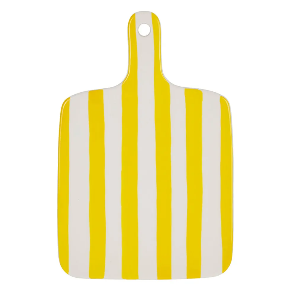 Ses rayures jaunes et blanches ajouteront une touche de couleur vive à votre cuisine, tout en étant un outil pratique pour vos préparations quotidiennes.