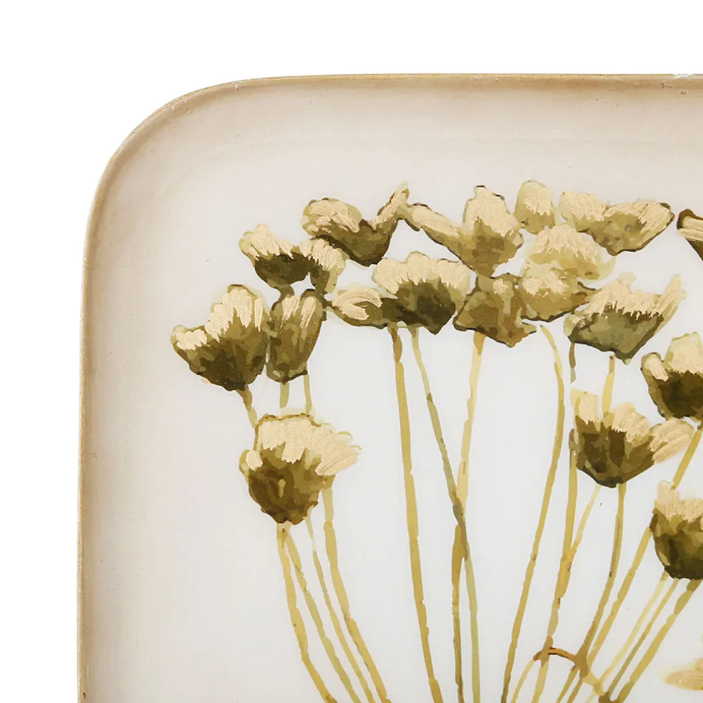 Découvrez notre plateau carré kaki et doré en fer de 16x16cm, orné d’une élégante fleur classique. Parfait pour apporter une touche de sophistication à votre intérieur.Fer / Iron