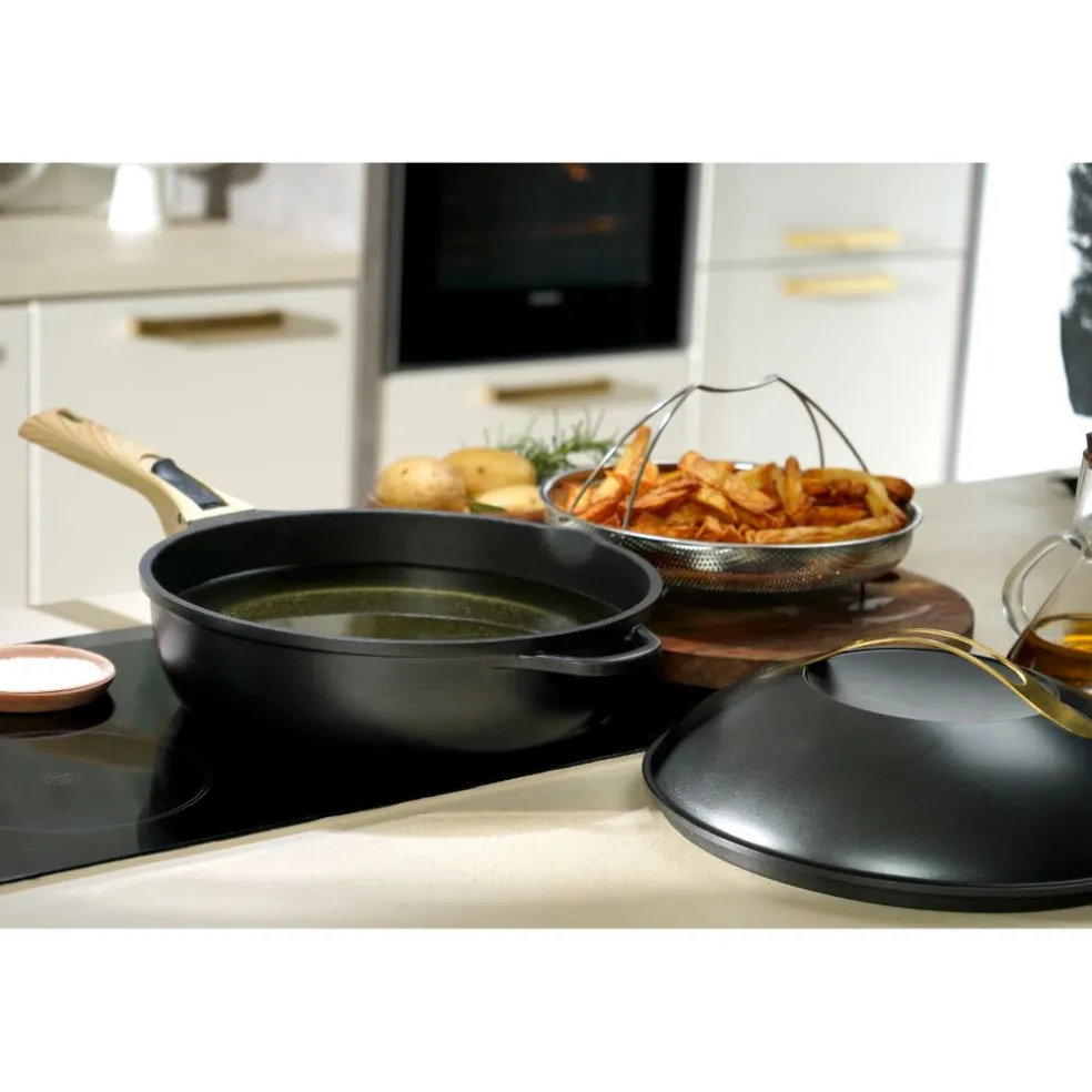 La poêle fabuleuse d28cm – meteore de Cookut est un ustensile de cuisine polyvalent qui peut remplacer huit autres ustensiles de cuisine.
