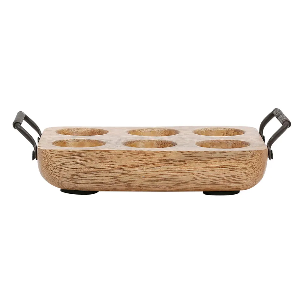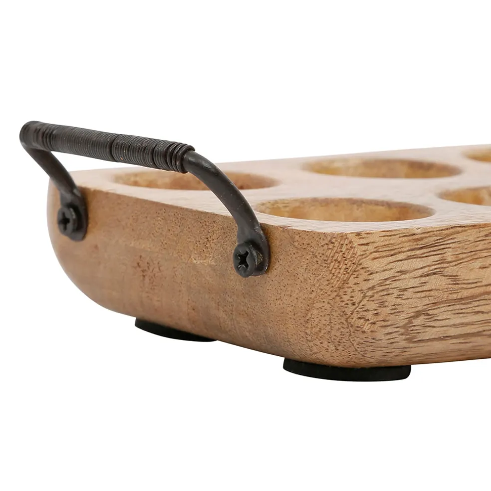 rFabriqué en manguier et en fer naturel, ce porte-œufs est à la fois robuste et esthétique.