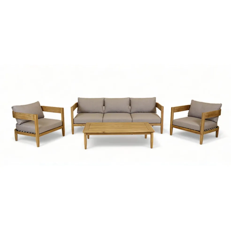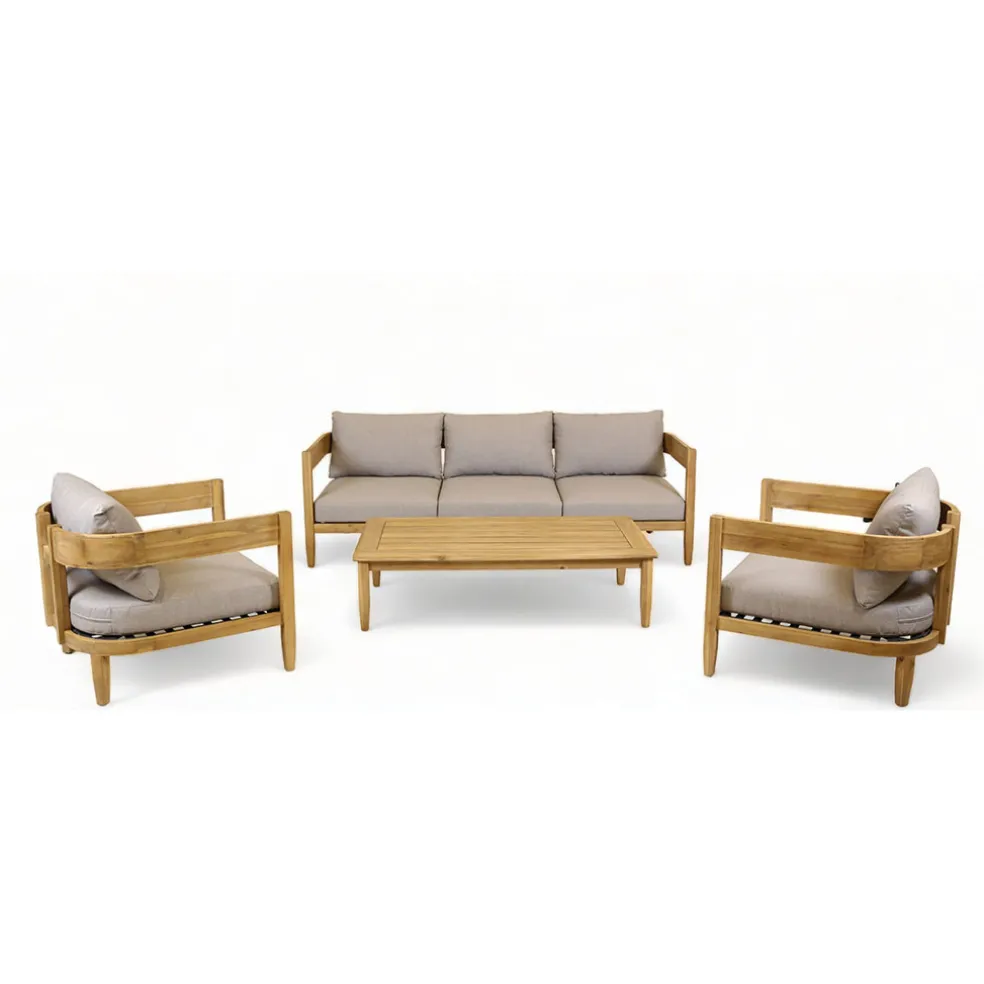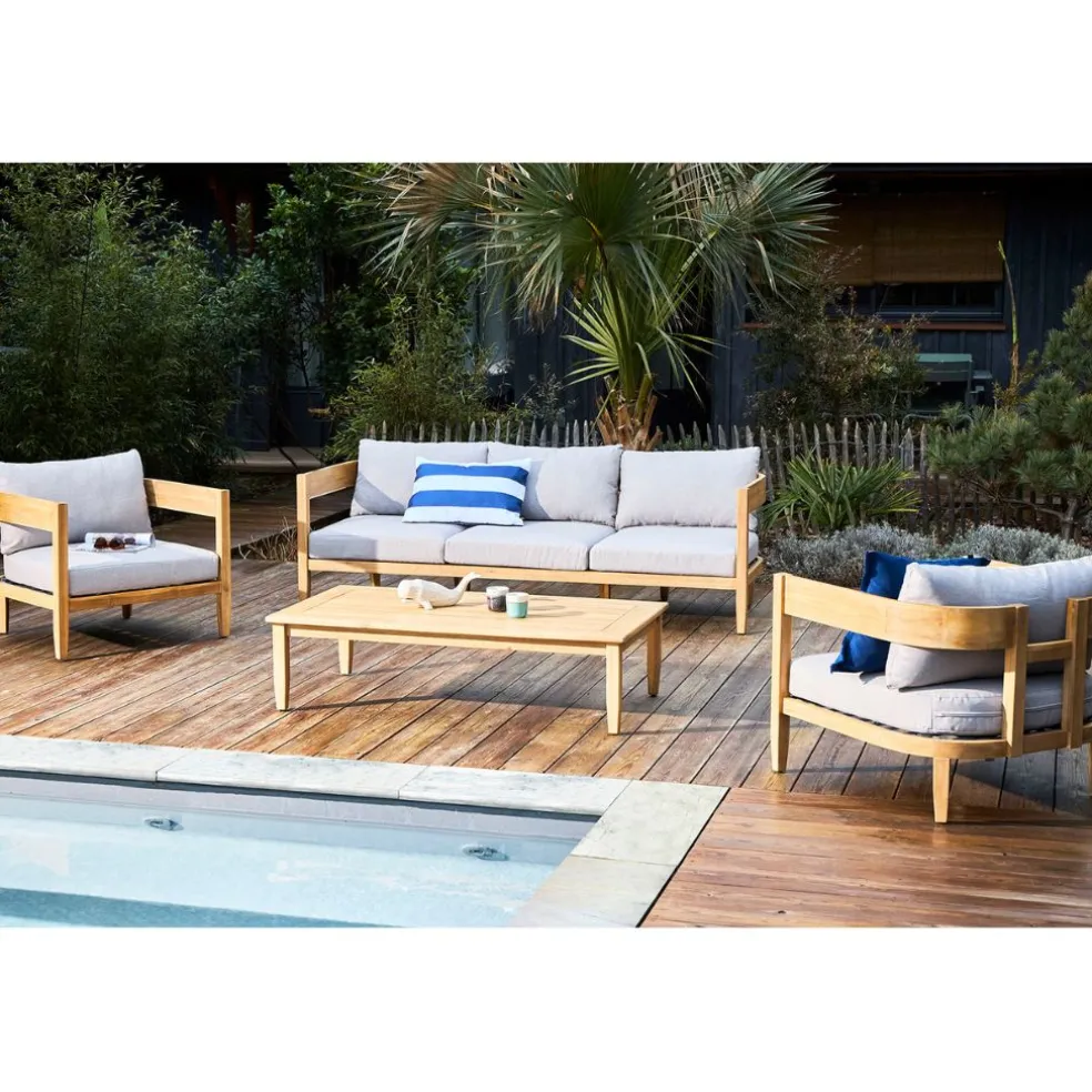 Découvrez le salon de jardin en acacia naturel et gris Borneo, idéal pour profiter de votre extérieur en toute élégance.