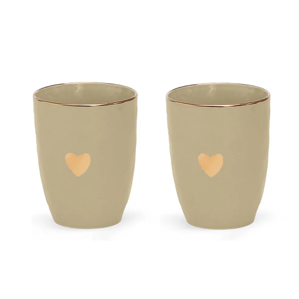 Ensemble de 2 gobelets en faïence fine, au design irrégulier et orné d’un cœur doré. Idéal pour un moment de partage à deux.Faïence