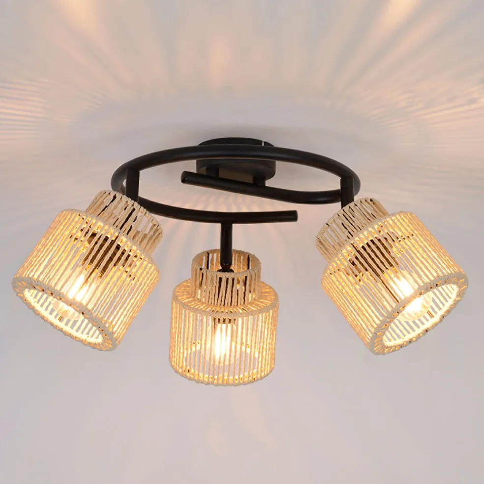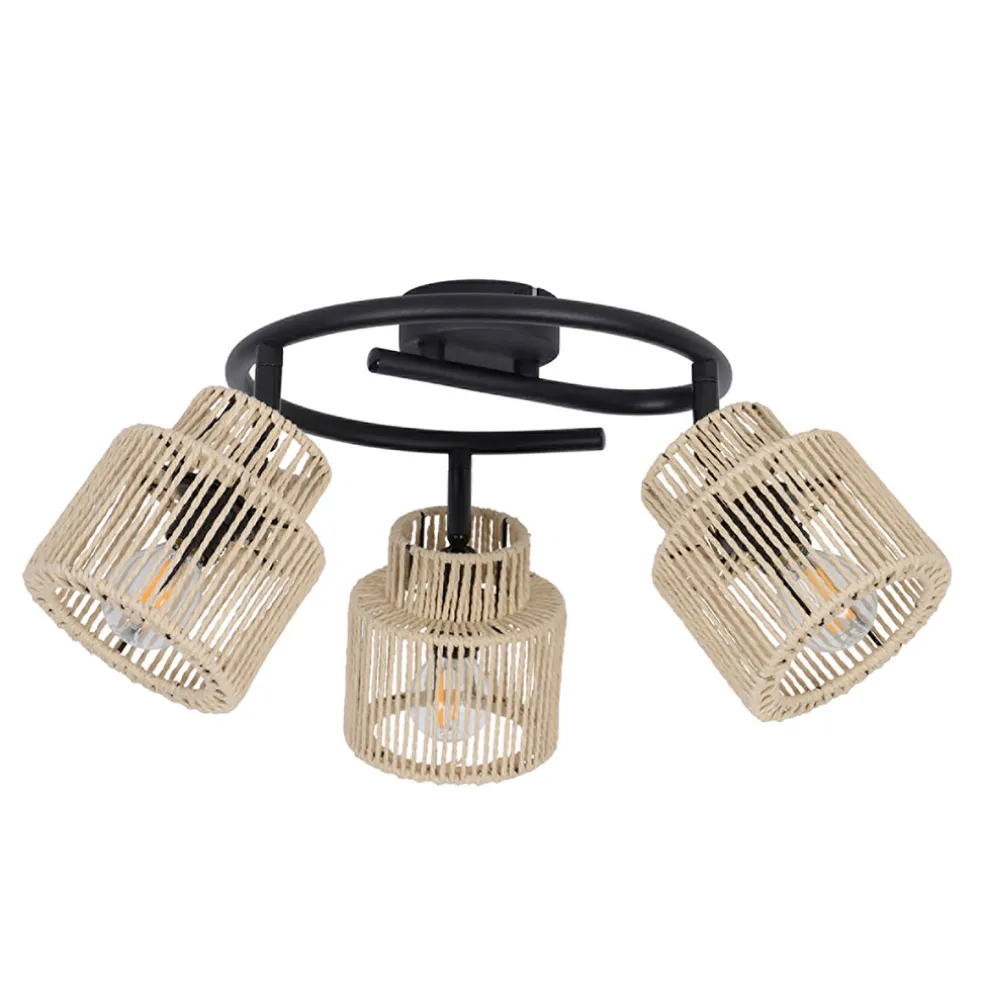 Le spot 3 lumières en métal et cordelette naturel Cancun, d’un diamètre de 47 cm, est un élément d’éclairage alliant modernité et style naturel.