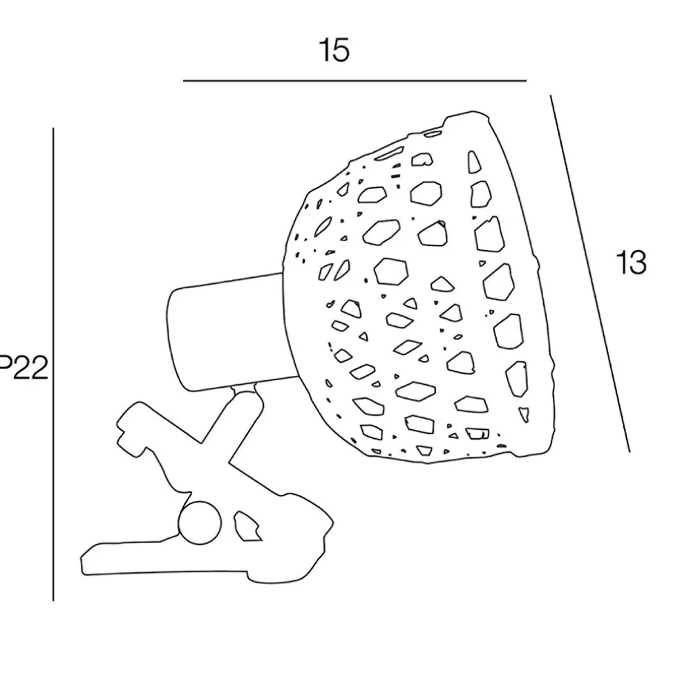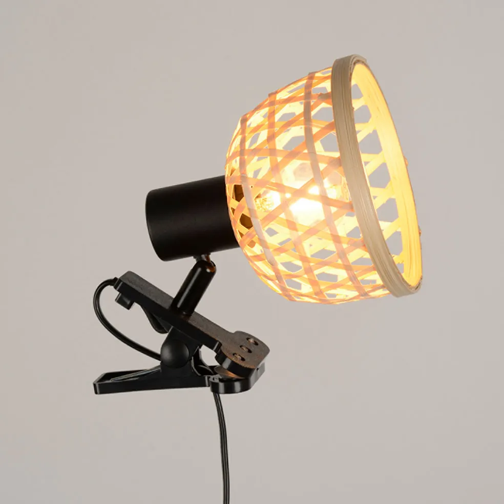 Spot à pince base en métal peint avec abat-jour en rotin. Tête articulée et pince en plastique. IP20. H15cm-L13cm-P22cm. Classe 2. E14-40W.métal et bambou