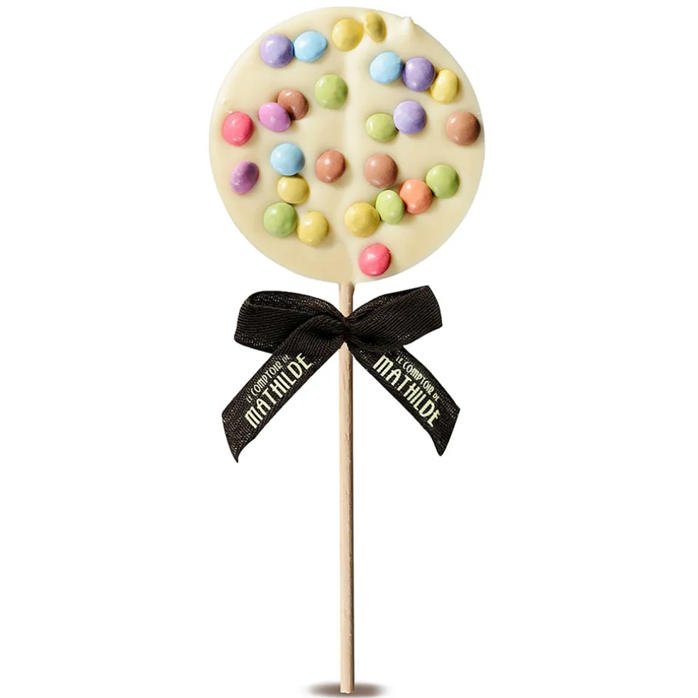 Cette sucette au chocolat blanc de 50g est l’alliée parfaite pour égayer vos fêtes et régaler petits et grands.