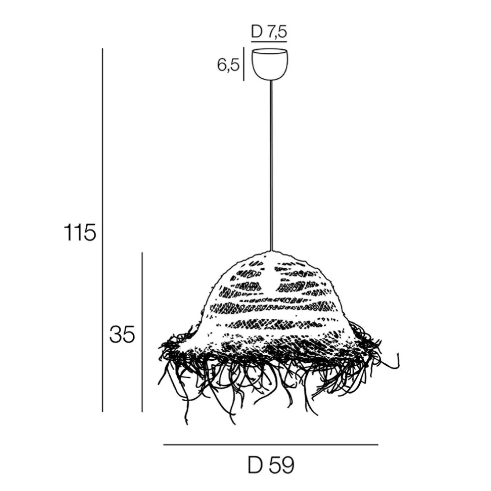 Suspension forme conique ajourée en matière Alfa fibres végétales grand modèle. Coloris : naturel. IP20. D59cm – H39cm – HT115cm. Classe 2. E27-15W.alfa