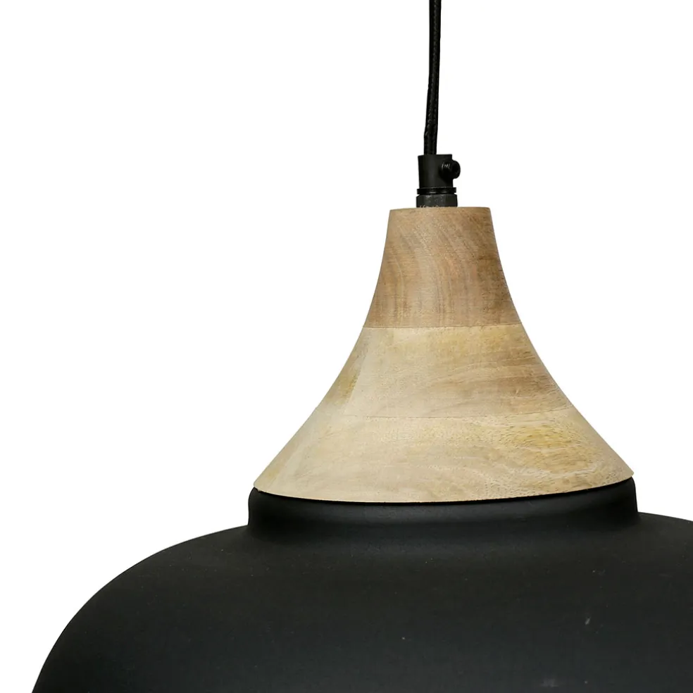 Ajoutez une touche sophistiquée et moderne à votre intérieur avec cette suspension en fer et manguier noir mat de 35cm de diamètre.Fer, Manguier