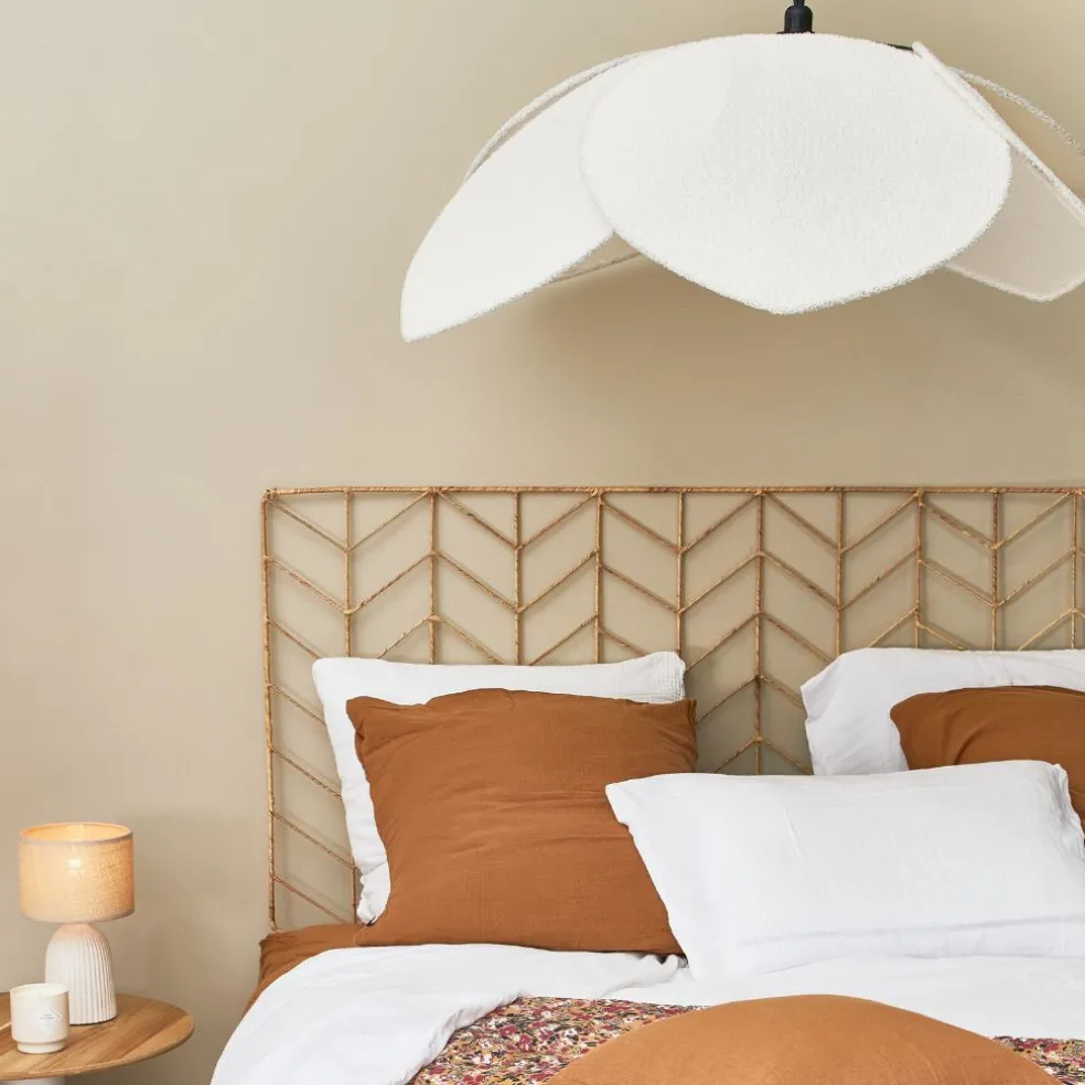 Découvrez la suspension en tissu et frêne d110x39cm écru – Bouclette, un luminaire qui allie design et praticité.