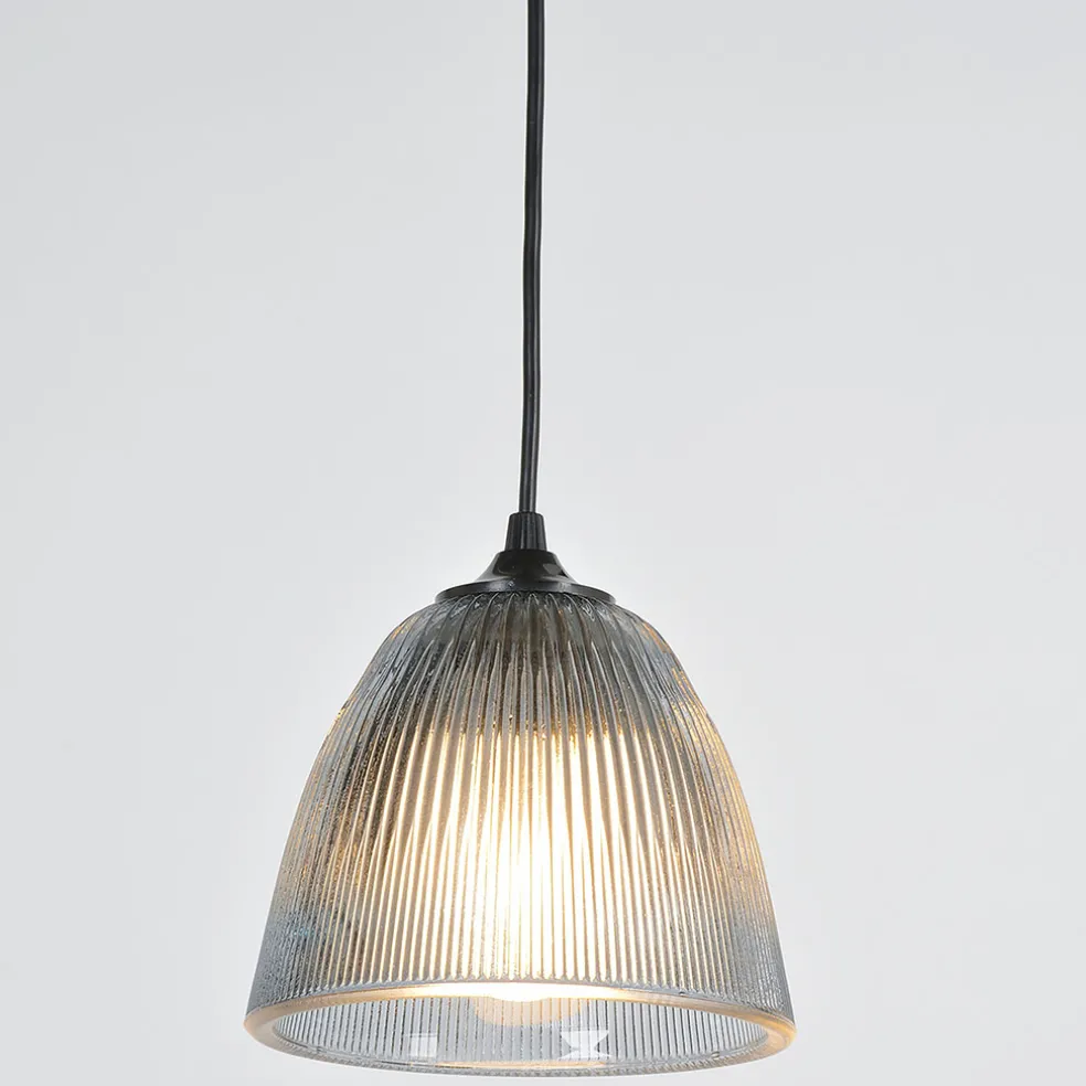 Venez découvrir notre Suspension en verre strié fumé de la marque Corep à découvrir sur Fabrique de StylesCéramique + rotin
