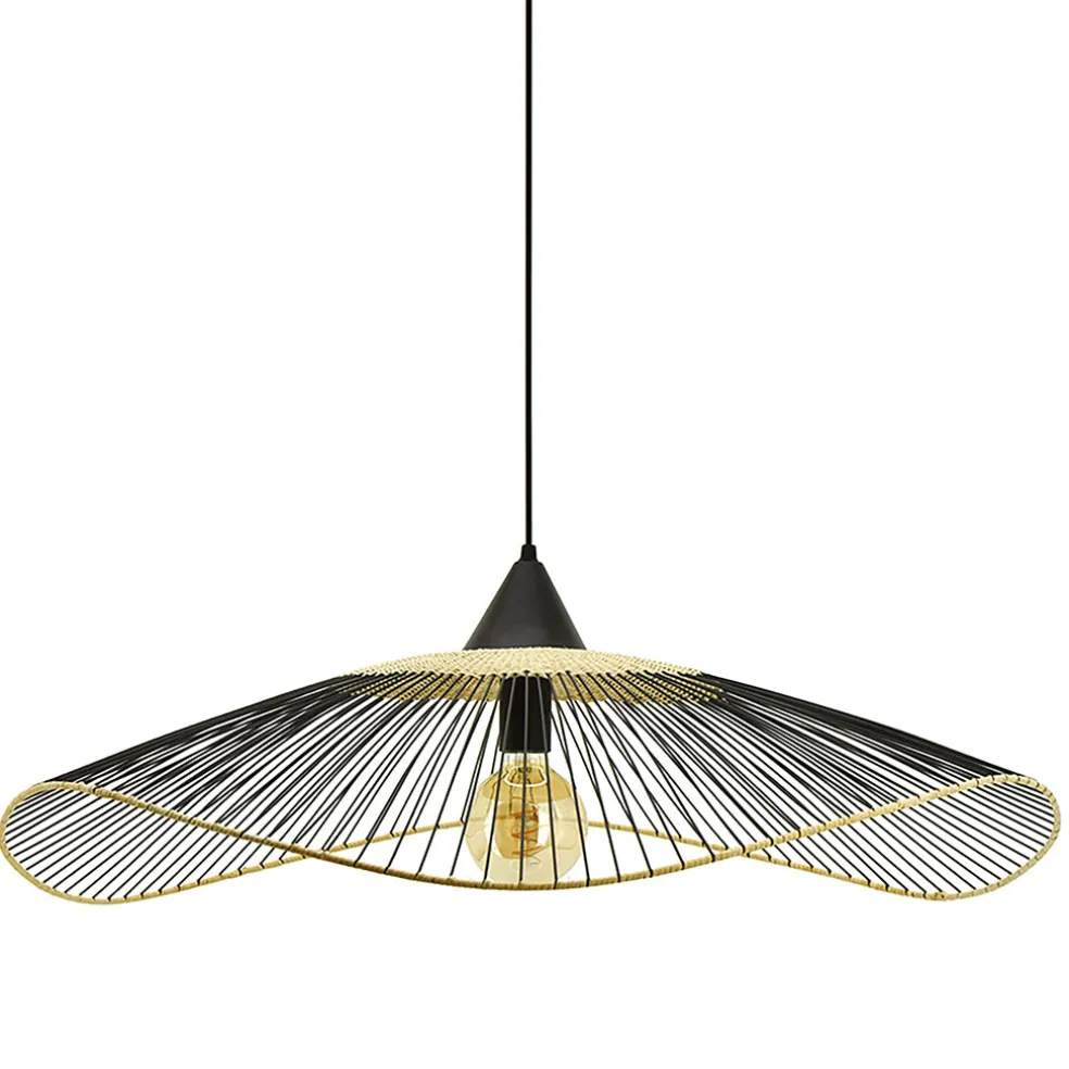La suspension métal et rotin noir d80cm – Vagala est bien plus qu’un simple luminaire ; c’est une œuvre d’art fonctionnelle qui transforme instantanément l’ambiance de n’importe quelle pièce, ajoutant une touche de caractère sans pareil.METAL ET ROTIN