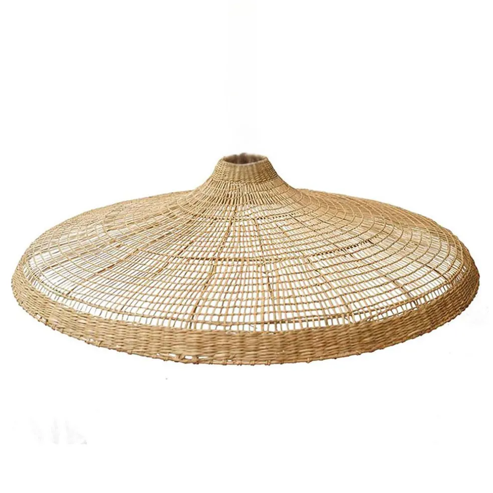 Laissez-vous charmer par cet abat-jour artisanal entièrement fait à la main en jonc de mer tressé.