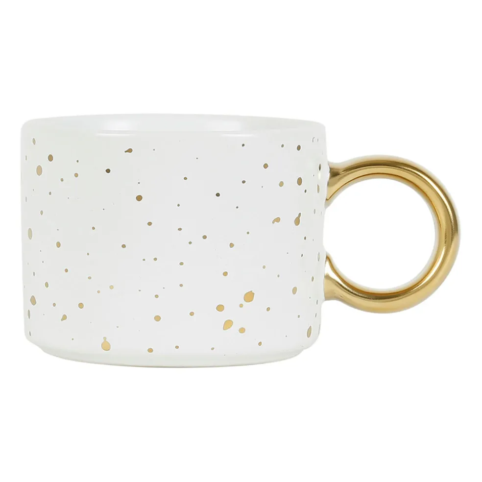 En grès blanc mat parsemé de touches dorées, cette tasse attire le regard et s’intègre harmonieusement dans tout type d’intérieur.