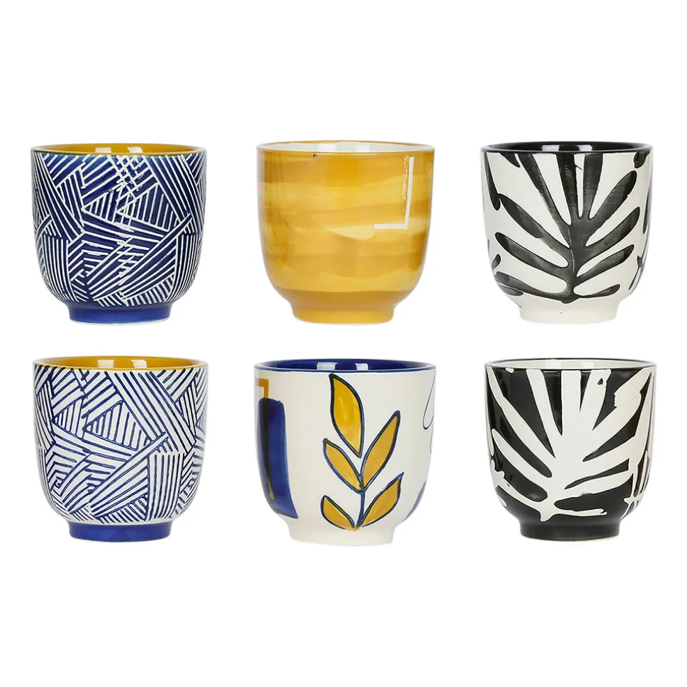 Découvrez nos Tasses arty folk bleu en grès de 15cl par lot de 6, parfaits pour ajouter une touche artistique à votre table.Grès