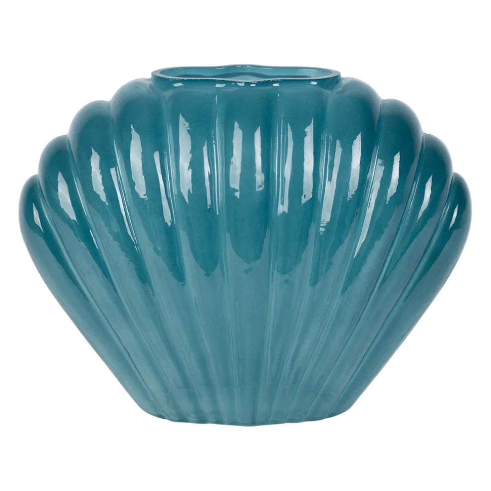 Apportez une touche marine à votre intérieur avec le vase coquillage en verre bleu Leucie.
