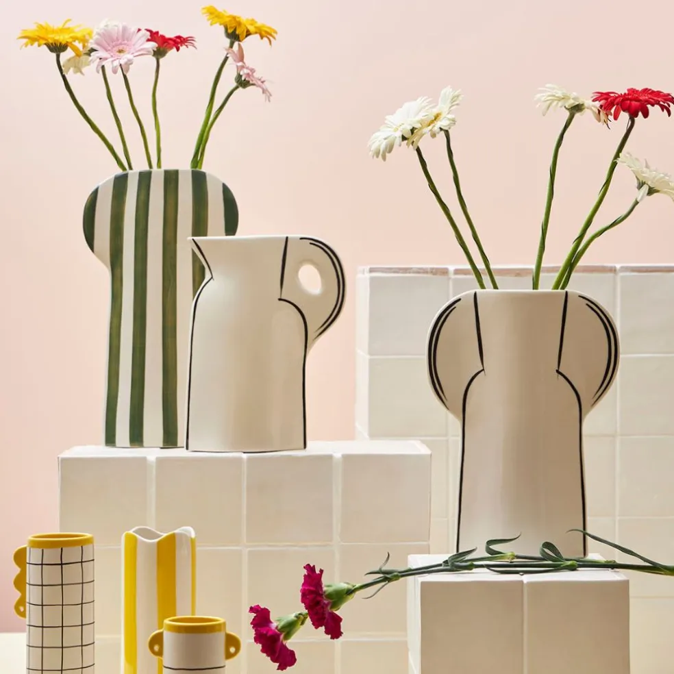 Ce vase en grès écru et noir de 24 cm de hauteur, nommé Lumi, est un véritable bijou pour votre décoration intérieure.