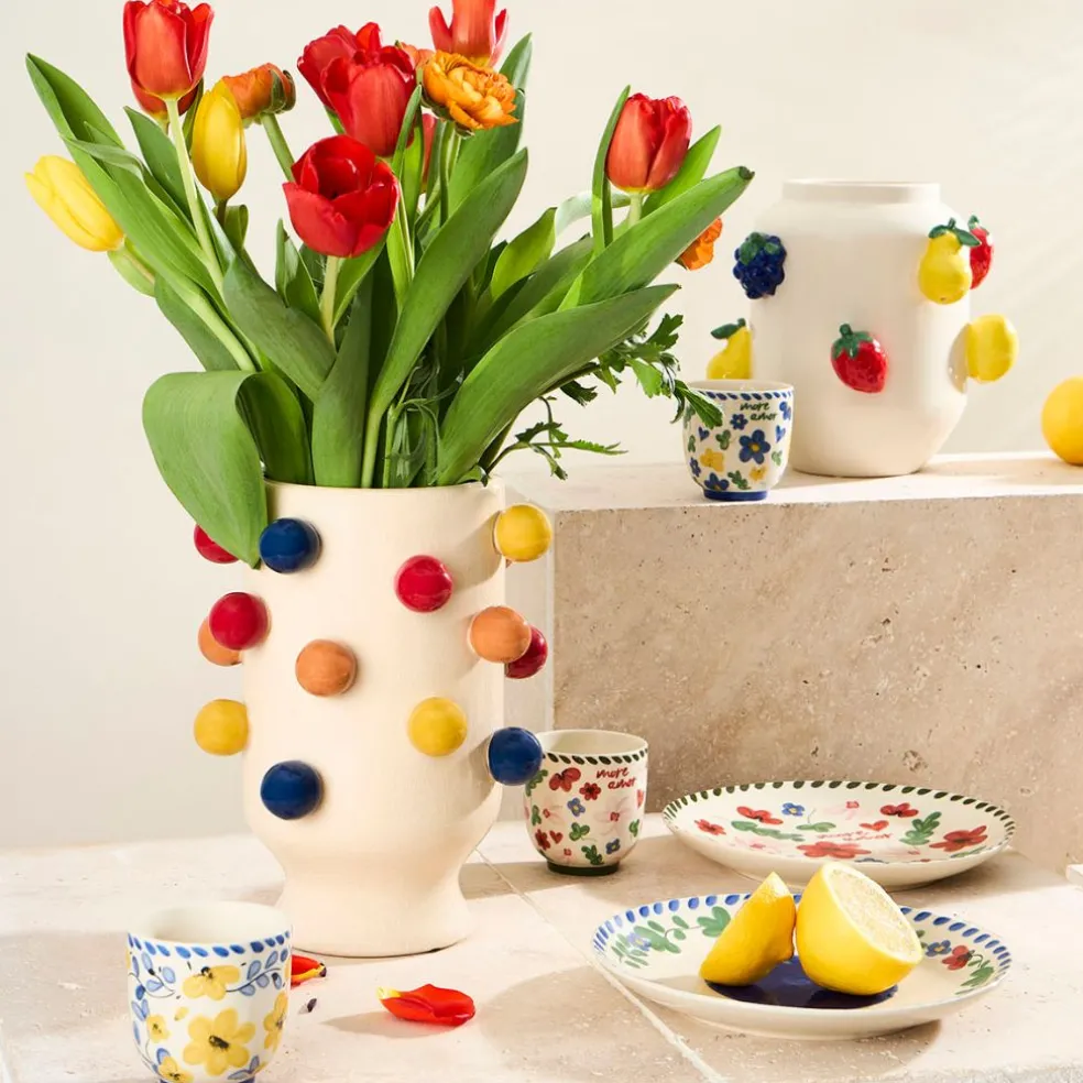 Ce vase en porcelaine multicolore de 24 cm, décoré d’un motif de visage arty, est l’accessoire parfait pour égayer n’importe quelle pièce de votre maison.