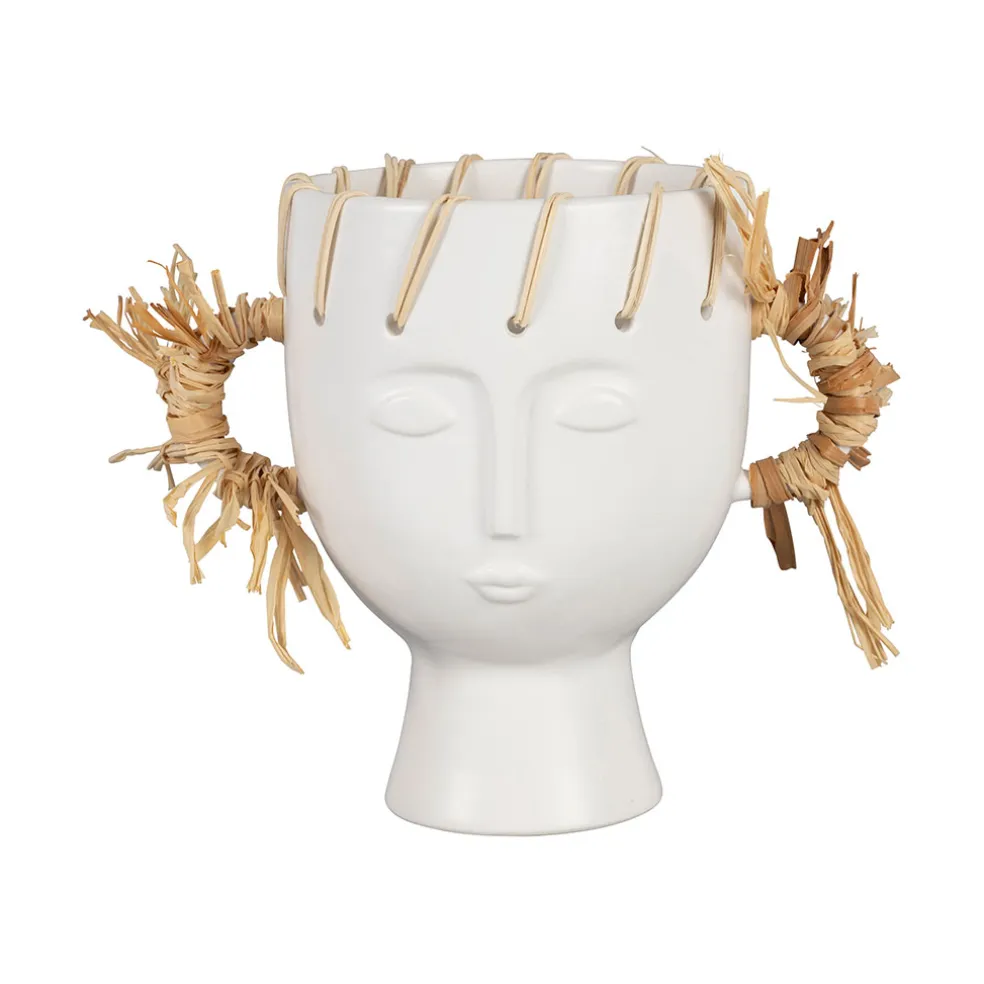 Apportez une touche artistique et originale à votre décoration intérieure avec le vase visage en dolomite écru Visage-Arty.