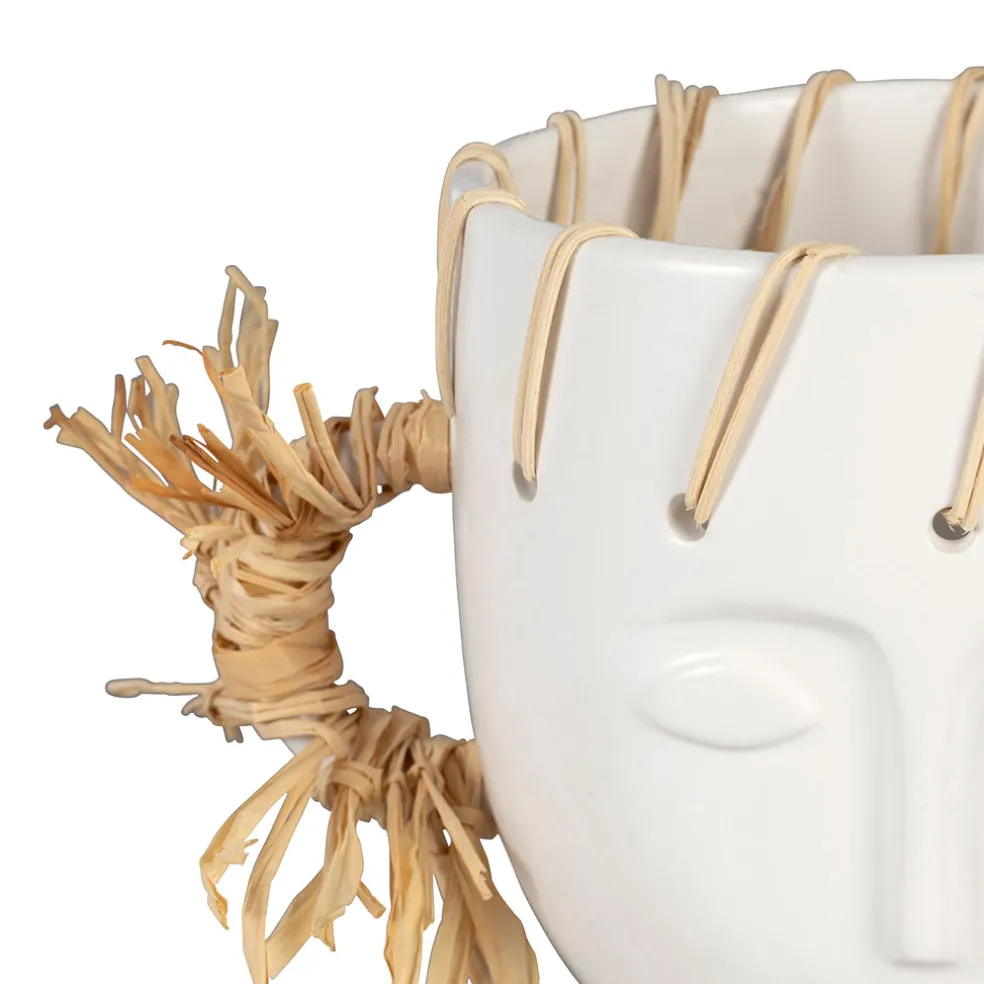 Mesurant 17 cm de hauteur, ce vase se distingue par son design unique représentant un visage stylisé, ajoutant une note de caractère et de modernité à votre espace.