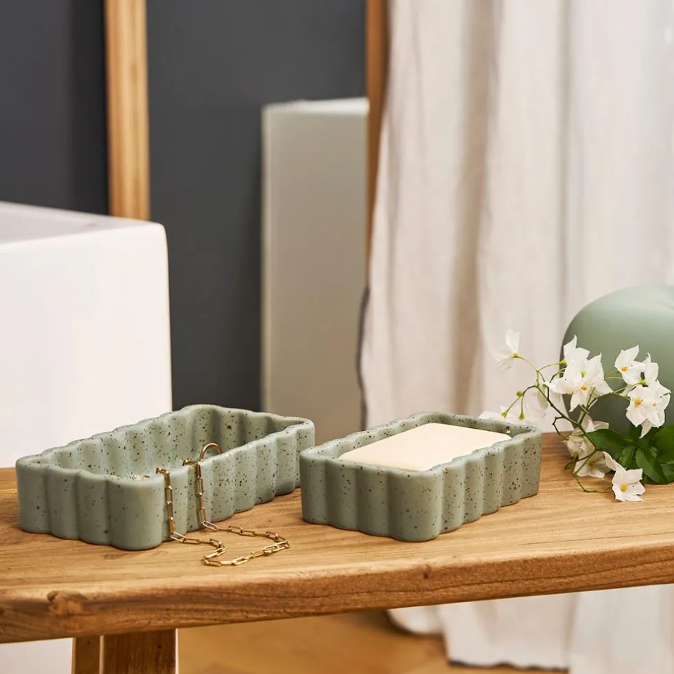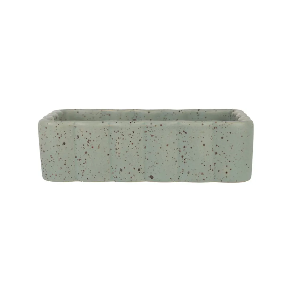 Découvrez notre vide poche en grès sauge moucheté 14×10 cm, signé Aurore, un accessoire incontournable pour organiser votre espace avec style.